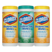 Disinfecting Wipes, Fresh Scent, 7 x 8, White, 75/CanisterClorox Disinfecting Wipes Pre-moistened, thick, textured wipes with clear-drying formula work on a variety of hard non-porous surfacesFrom Clorox Commercial SolutionsRemoves common allergensEPA-registered to kill 99.9% of germs including MRSA, E. coli, Salmonella, Staph, and StrepKills cold and flu viruses and the organism that can cause whooping…