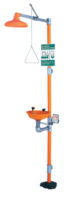 Eye Wash & Shower Stations w/SS Shower Head, 11 1/2 in, OrangeGuardian Eye Wash & Shower Stations Eye wash is activated by flag handle, two GS-Plus™ spray heads deliver a flood of water for rinsing eyesShower Valve: 1 in IPS chrome plated brass stay-open ball valve, furnished with stainless steel actuating arm and 29 in…