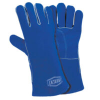 Leather Welding Gloves, Shoulder Split Cowhide, Large, BlueBest Welds Split Cowhide Welding Gloves 5-ply Kevlar sewnSplit cowhide welding glove with Gunn-Wing thumb and full sock liningHeat- and abrasion-resistant COUNTRY OF ORIGIN: CNPROP 65 WARNING REQUIRED: NPROP 65 WARNING LABEL: N