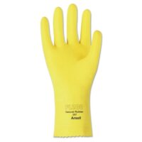Hy-Care Gloves, 10, Natural Latex, BlueAnsell Hy-Care Gloves Flexible and durable glove useful for a wide range of jobs including food handling and chemical protectionSoft-knit cotton liner helps keep hands and fingers comfortable in hot or cold environmentsExcellent grip for wet applicationsExcellent dexterityStays flexible in cold temperatures (as low as -25°F, depending on contact time…