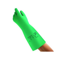 Solvex Nitrile Gloves, Gauntlet Cuff, Unlined, 11 mil, Size 9, GreenAnsell Solvex Nitrile Gloves High-performance nitrile compound which provides an outstanding combination of strength and chemical resistanceWhen exposed to aromatic and petroleum solvents, as well as caustics and animal fats, Sol-Vex gloves have proven to be a superior choice over rubber or neopreneHigh levels of…