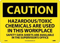 CAUTION, HAZARDOUS/TOXIC CHEMICALS ARE USED IN THIS WORKPLACE. . ., 10X14, .040 ALUMMATERIAL: ALUMINUM .040LEGEND FRONT: HAZARDOUS/TOXIC CHEMICALS ARE USED IN THIS WORKPLACE SAFETY DATA SHEETS ARE AVAILABLE IN THE SUPERVISOR’S OFFICE