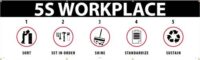 BANNER, 5S WORKPLACE SORT SET IN ORDER SHINE STANDARDIZE SUSTAIN, 3FTX5FT, POLYETHYLENEMATERIAL: VINYL BANNERLEGEND FRONT: 5S WORKPLACE SORT SET IN ORDER SHINE STANDARDIZE SUSTAIN