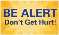 BANNER, BE ALERT DON’T GET HURT!, 3FT X 5FTMATERIAL: VINYL BANNERLEGEND FRONT: BE ALERT DON’T GET HURT