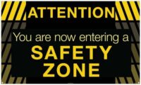 BANNER, ATTENTION YOU ARE NOW ENTERING A SAFETY ZONE, 3FT X 5FTMATERIAL: VINYL BANNERLEGEND FRONT: ATTENTION, YOU ARE NOW ENTERING A SAFETY ZONE