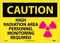 CAUTION, HIGH RADIATION AREA PERSONNEL MONITORING REQUIRED, GRAPHIC, 10X14, .040 ALUM MATERIAL: ALUMINUM .040 LEGEND FRONT: HIGH RADIATION AREA PERSONNEL MONITORING REQUIRED