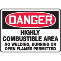 Safety Sign, DANGER HIGHLY COMBUSTIBLE AREA, 10 x 14, AluminumAccuform Signs Aluminum Safety Signs COUNTRY OF ORIGIN: US