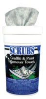 SCRUBS Graffiti & Spray Paint Remover Towels, 10 in x 12 inSCRUBS Graffiti & Spray Paint Remover Towels Combines a high quality graffiti remover formula with an absorbent, abrasive, nonscratching towelTowel absorbs and holds residue without redepositing paint on the surfaceJelled formulaWorks on metal, glass, porcelain, vinyl, stainless steel, Plexiglas, aluminum, formica, cement or brick,…