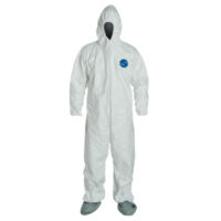 Tyvek Coveralls With Attached Hood and Boots, White, X-LargeDuPont™ Tyvek Coveralls With Attached Hood and Boots Flash spun high-density polyethylene constructionInherent barrier against particles (down to 1.0 micron in size)Enables a greater range of movement while stretching and bendingOffers reinforcement in high stress areas for fewer blowoutsZipper extends to chin for complete coverage of neck…