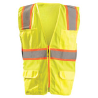 Class 2 Surveyor Style Mesh Vests, 2X-Large, YellowOccuNomix Class 2 Surveyor Style Mesh Vests 2 in silver reflective tape over a 2 3/4 in contrasting trimPockets: 3 inside low, 2 outside low flapped, 1 outside high w/oversewn pencil slots, 1 radioTwo mic tabsLightweight and breathable fabric