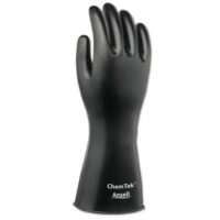ChemTek Protective Gloves, Black, Rough, Size 10Ansell ChemTek™ Protective Gloves Provides resistance to the most aggressive chemicals without compromising dexterity or comfortDesigned for comfort €“ with a natural, curved ergonomic shape and soft feel they offer easy donning and good gripThe absence of latex proteins means there’s no risk of latex allergies COUNTRY OF ORIGIN:…