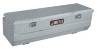 ALUMINUM FULLSIZE CHEST59-5/16X17-5/16X20-5/8″JOBOX Aluminum Chests Recessed hinge allows lid to fully open when back of chest is placed against another objectRugged aluminum construction with reinforced lid for maximum strength and securityGas spring lid lifts allow easier accessLeak-proof, stainless steel paddle handle prevents back-spray from enteringFull weather striping helps seal out moisture and dustTapered lower front…