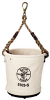 Lift Buckets, 17 inKlein Tools Lift Buckets Load rated 150 lb14 in diameter accommodates standard 5 gallon bucketBody constructed of heavy-duty No. 1 / CASEnvasDurable steel rimLeather reinforced bottom extends 3 in up the sideTop of bucket zips closedWeb strap extends down the side of the bucket COUNTRY OF ORIGIN: USPROP 65 WARNING REQUIRED: YPROP…