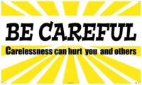 BANNER, BE CAREFUL CARELESSNESS CAN HURT YOU AND OTHERS, 3FT X 5FTMATERIAL: VINYL BANNERLEGEND FRONT: BE CAREFUL CARELESSNESS CAN HURT YOU AND OTHERS