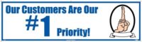 BANNER, OUR CUSTOMERS ARE OUR #1 PRIORITY, 3FT X 10FTMATERIAL: VINYL BANNERLEGEND FRONT: OUR CUSTOMERS ARE OUR #1 PRIORITY