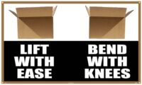 BANNER, LIFT WITH EASE BEND WITH KNEES, 3FT X 5FTMATERIAL: VINYL BANNERLEGEND FRONT: LIFT WITH EASE BEND WITH KNEES