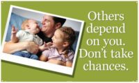 BANNER, OTHERS DEPEND ON YOU. DON’T TAKE CHANCES, 3FT X 5FTMATERIAL: VINYL BANNERLEGEND FRONT: OTHERS DEPEND ON YOU. DON’T TAKE CHANCES.